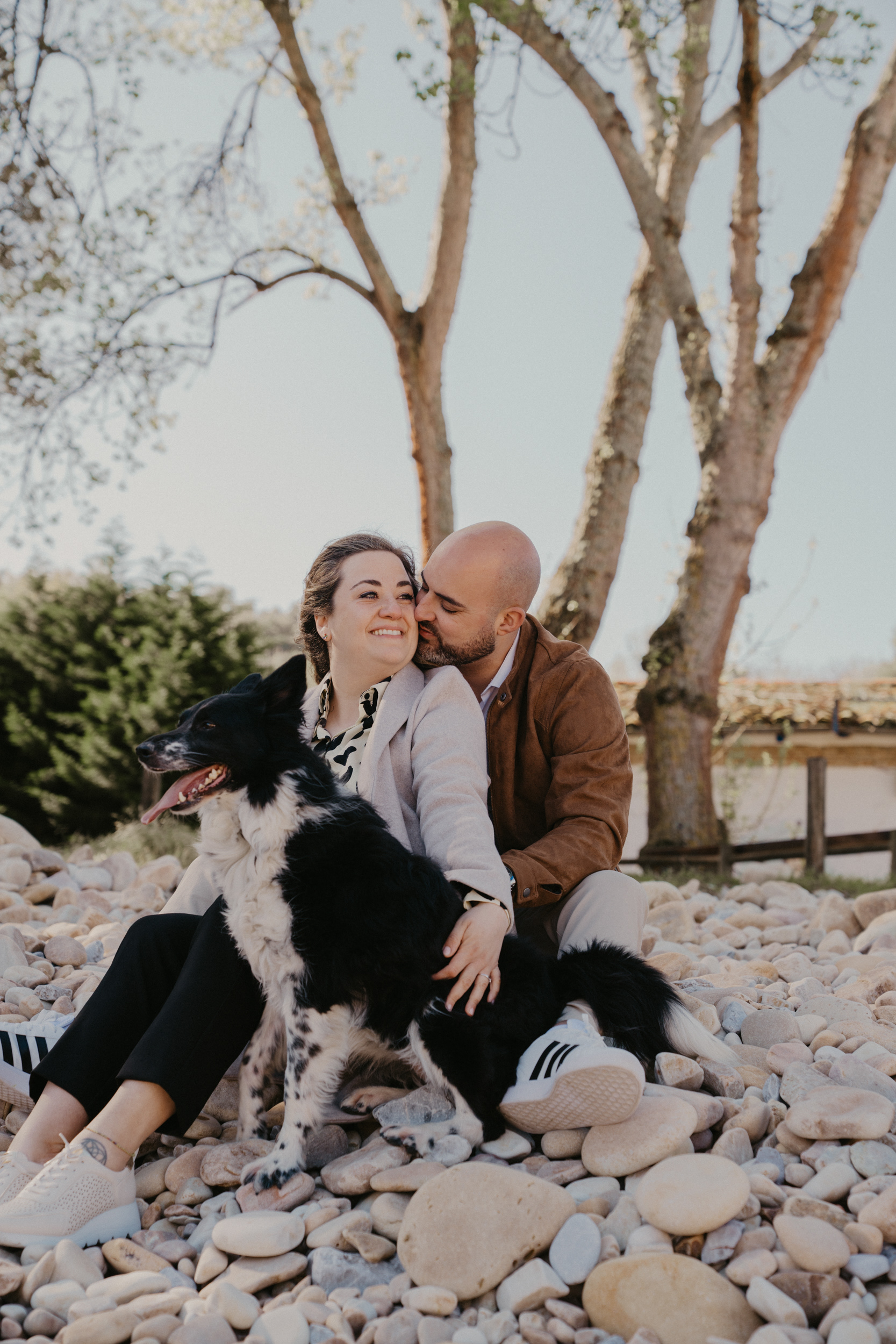 Laura y David se van a casar el próximo Octubre pero ya tenían ganas de salitre y arena (algunos acabarían llenos de estas dos). Así que cogimos la cámara y un sábado por la mañana fuimos temprano hasta la playa de Cuevas del Mar, en el Concejo de Llanes, Asturias. Quien acaparó todas las miradas durante gran parte de la sesión no sería la pareja, sino su perrita, enérgica, incansable y muy juguetona, tanto que constantemente nos traía piedras para que se las lanzásemos como si fuesen pelotas, fue un auténtico reto capturarla con su mejor expresión. Paseando a la orilla del mar la pareja dio rienda suelta a su amor entre besos y miradas que dejamos recogidas en esta sesión fotográfica. Poco antes de irnos a disfrutar del resto del día caminamos hasta la Ermita de San Antonio medio kilómetro más allá para disfrutar de las vistas de los acantilados y el mar.