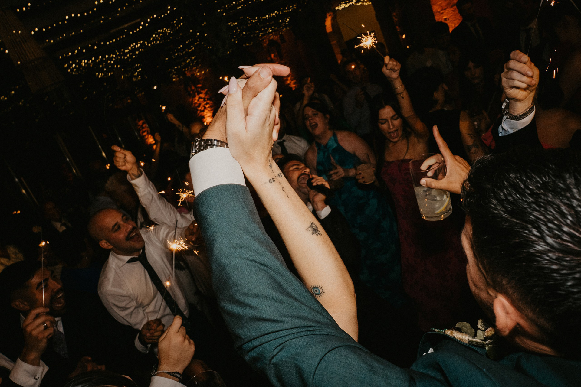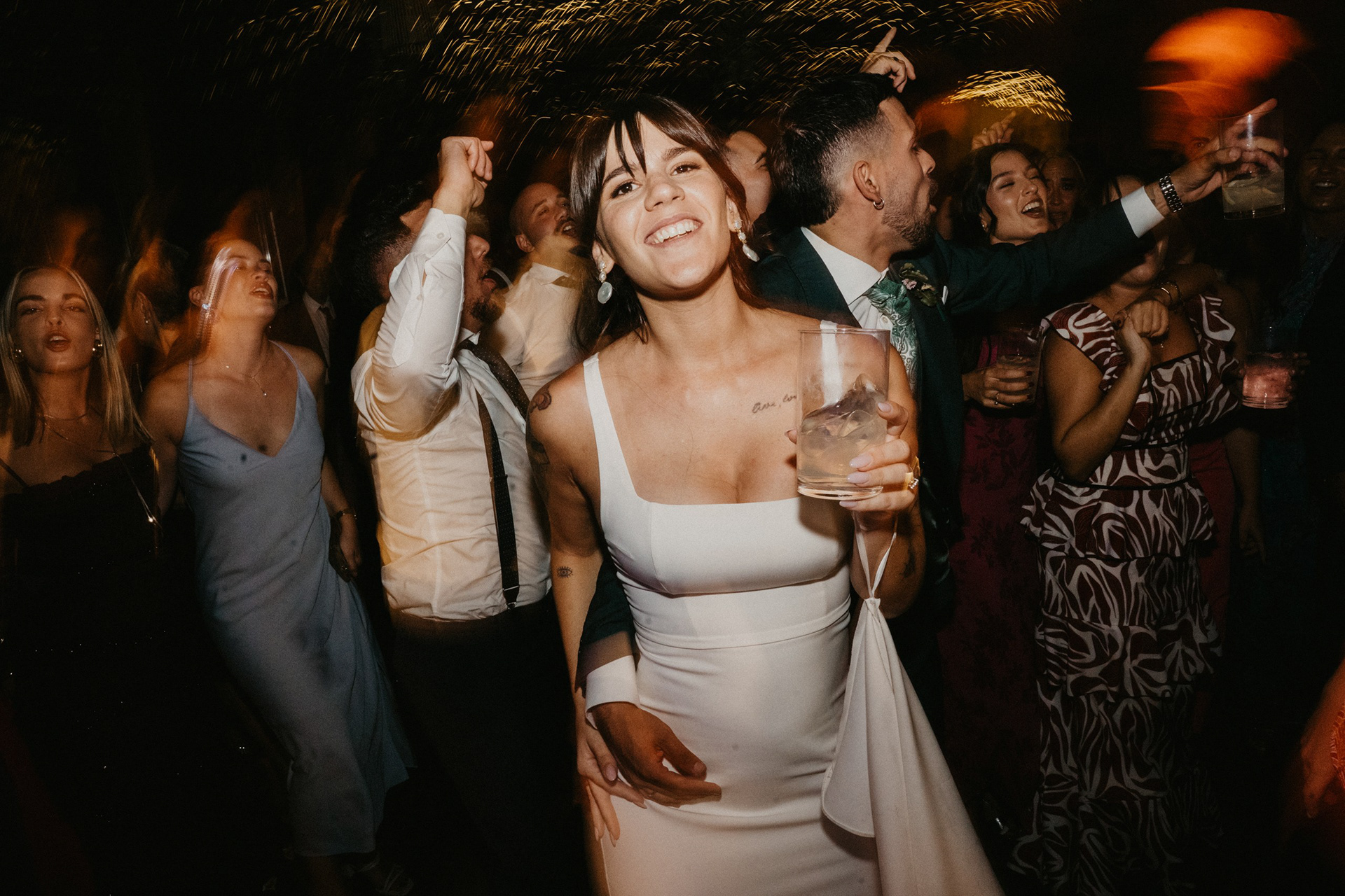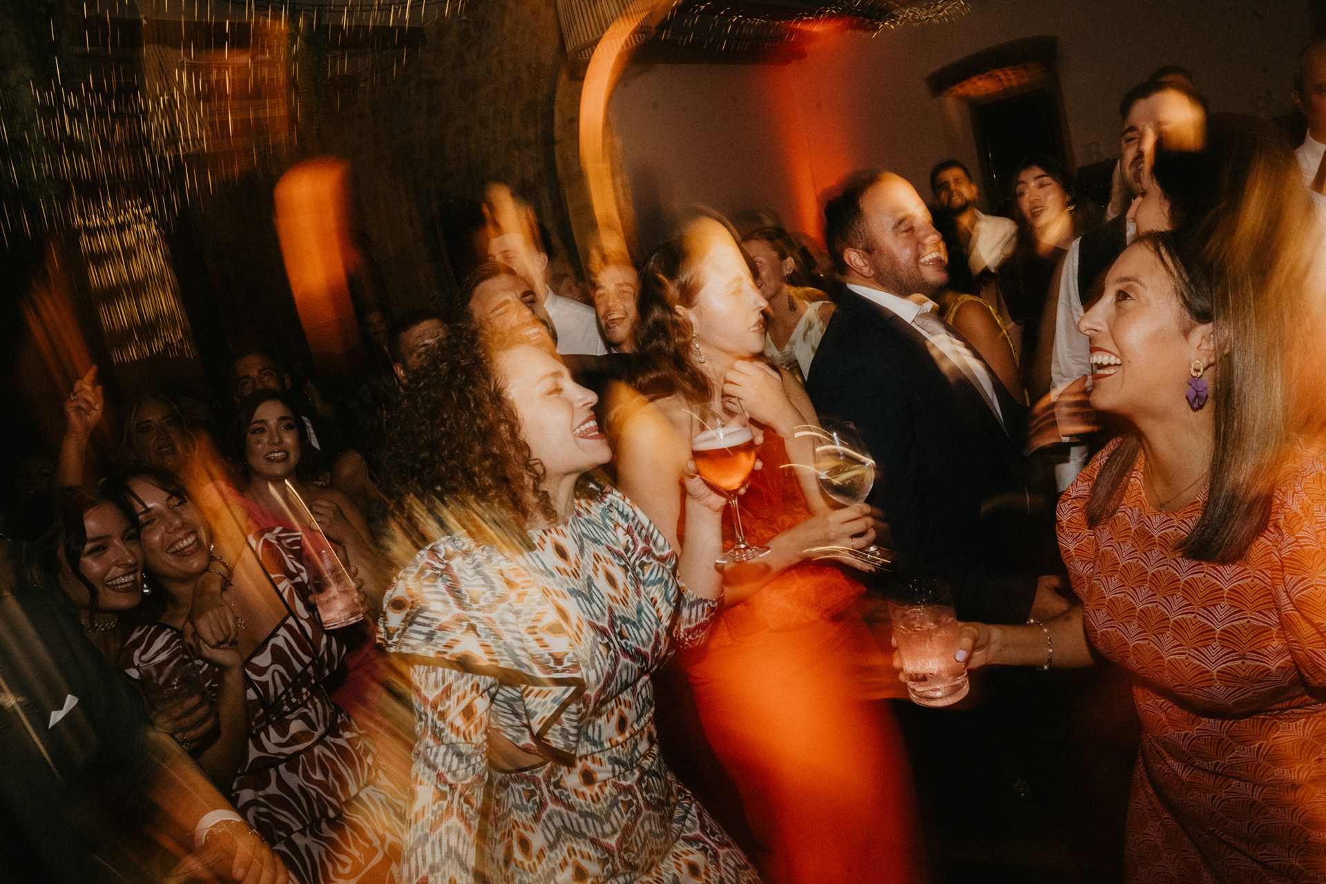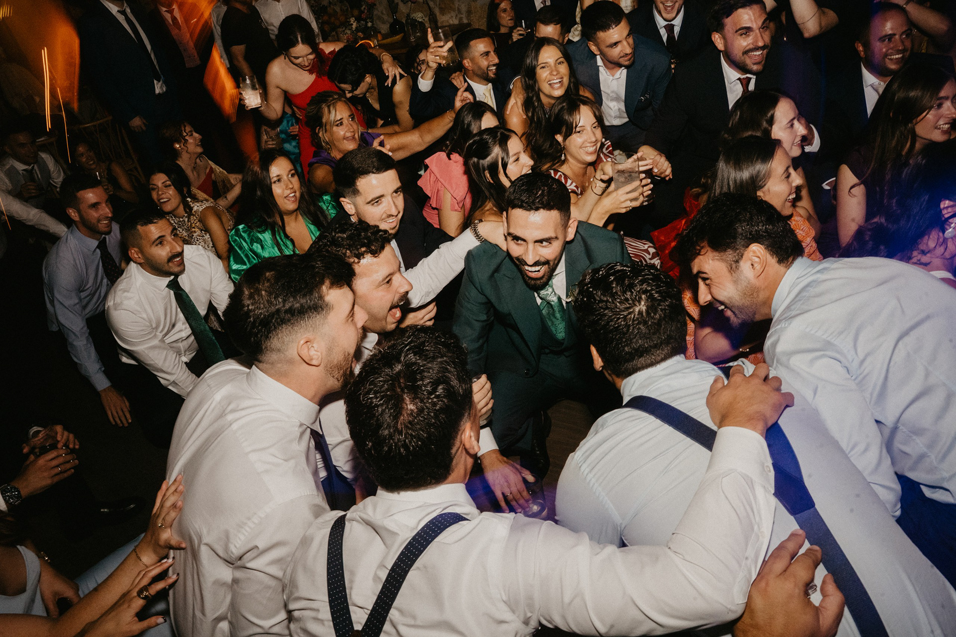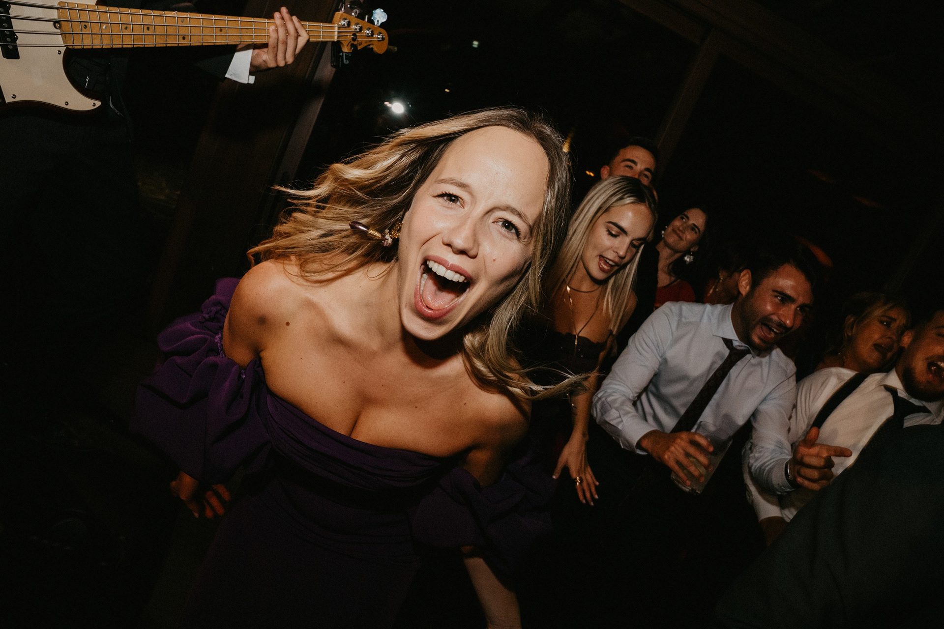 Tras la sesión fotográfica en los jardines con la pareja, degustamos el banquete, había que coger fuerzas para lo que venía a continuación. Guitarra, bajo, teclado, batería y voz empezaron a poner ritmo al baile nupcial, no era una playlist, tampoco una banda cualquiera. Los Villaboy Band tomaron el escenario del Palacio de Valdesoto con su show lleno de bengalas, momentos frenéticos y versiones del pock e indie español para hacernos saltar sin parar.