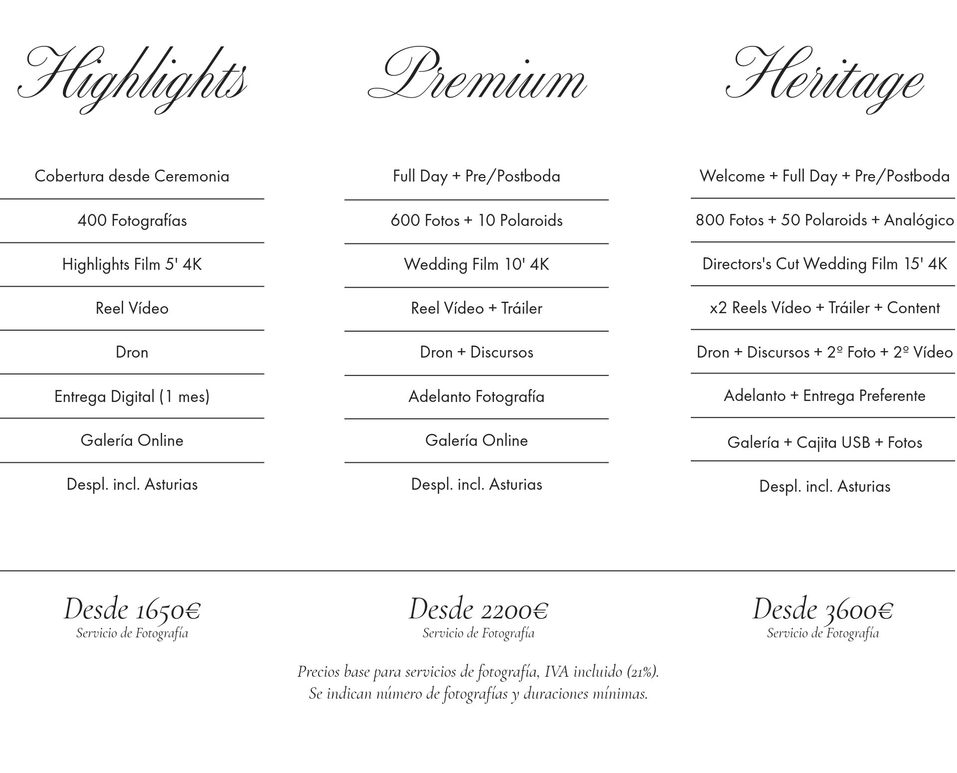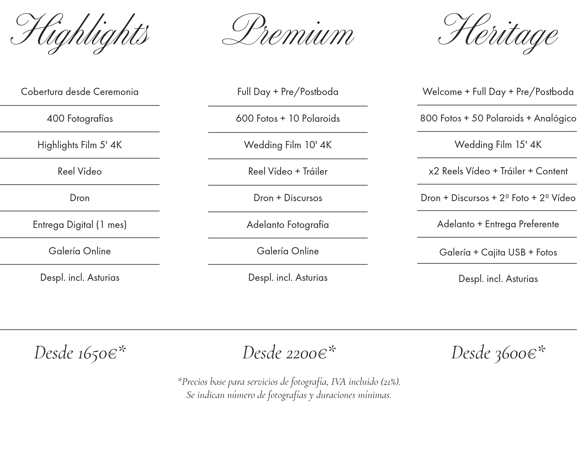 Heritage es nuestro servicio más exclusivo, desde el momento inicial estaremos en estrecho contacto con vosotros para brindaros algo único y muy personal; una cobertura delicada, creativa y editorial con nuestro equipo al completo y añadidos especiales como la fotografía analógica, wedding content creator, o numerosas fotografías Polaroid.