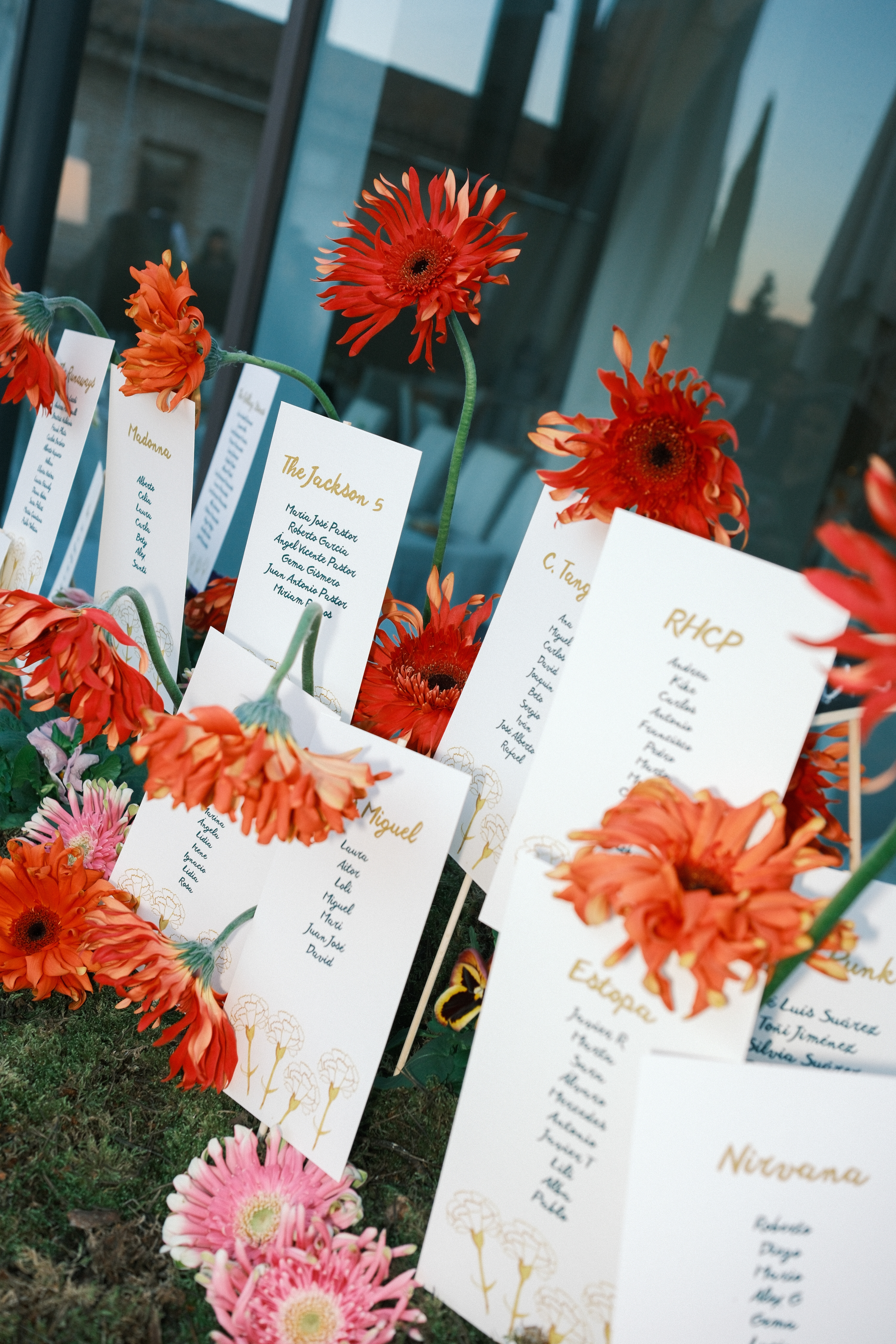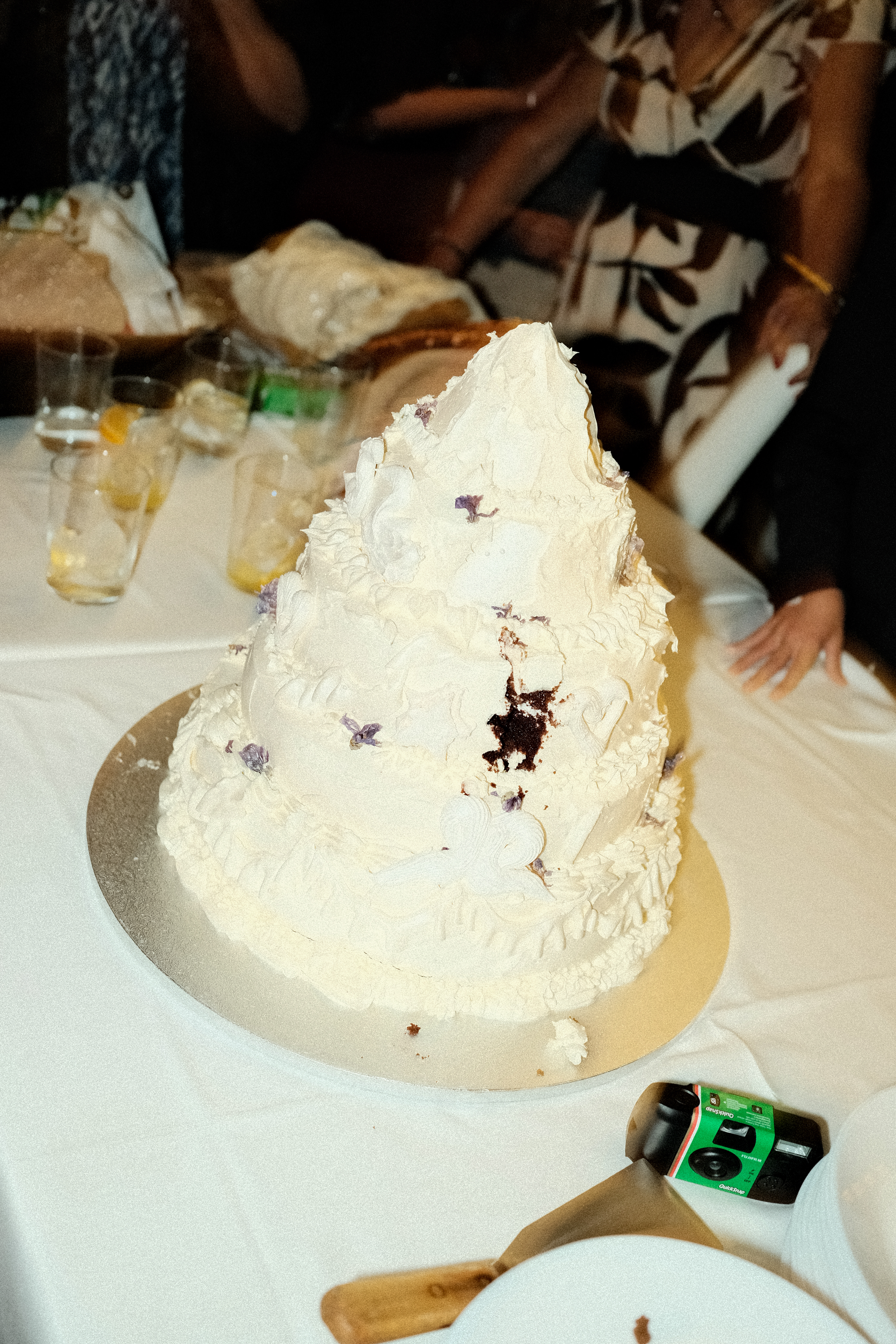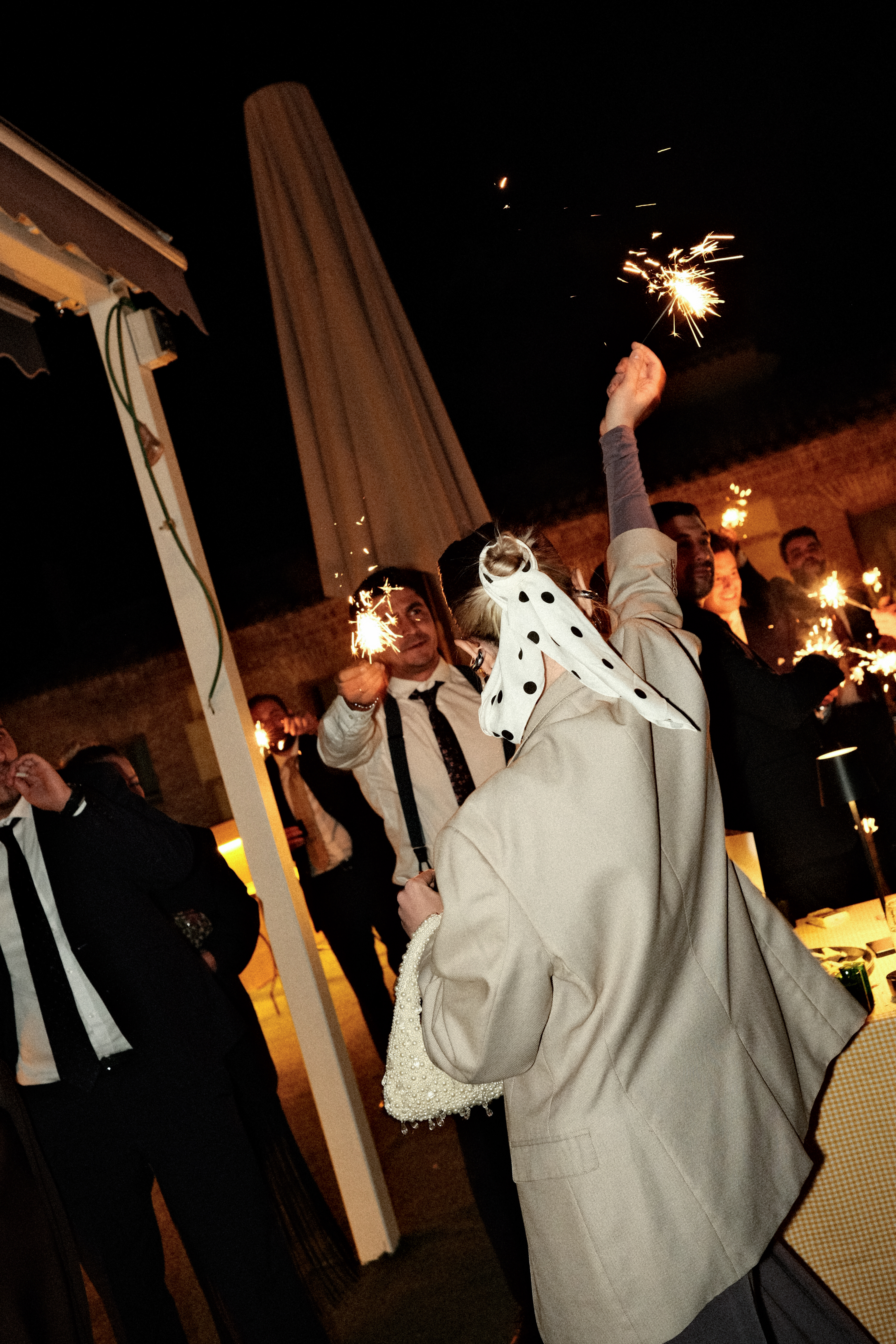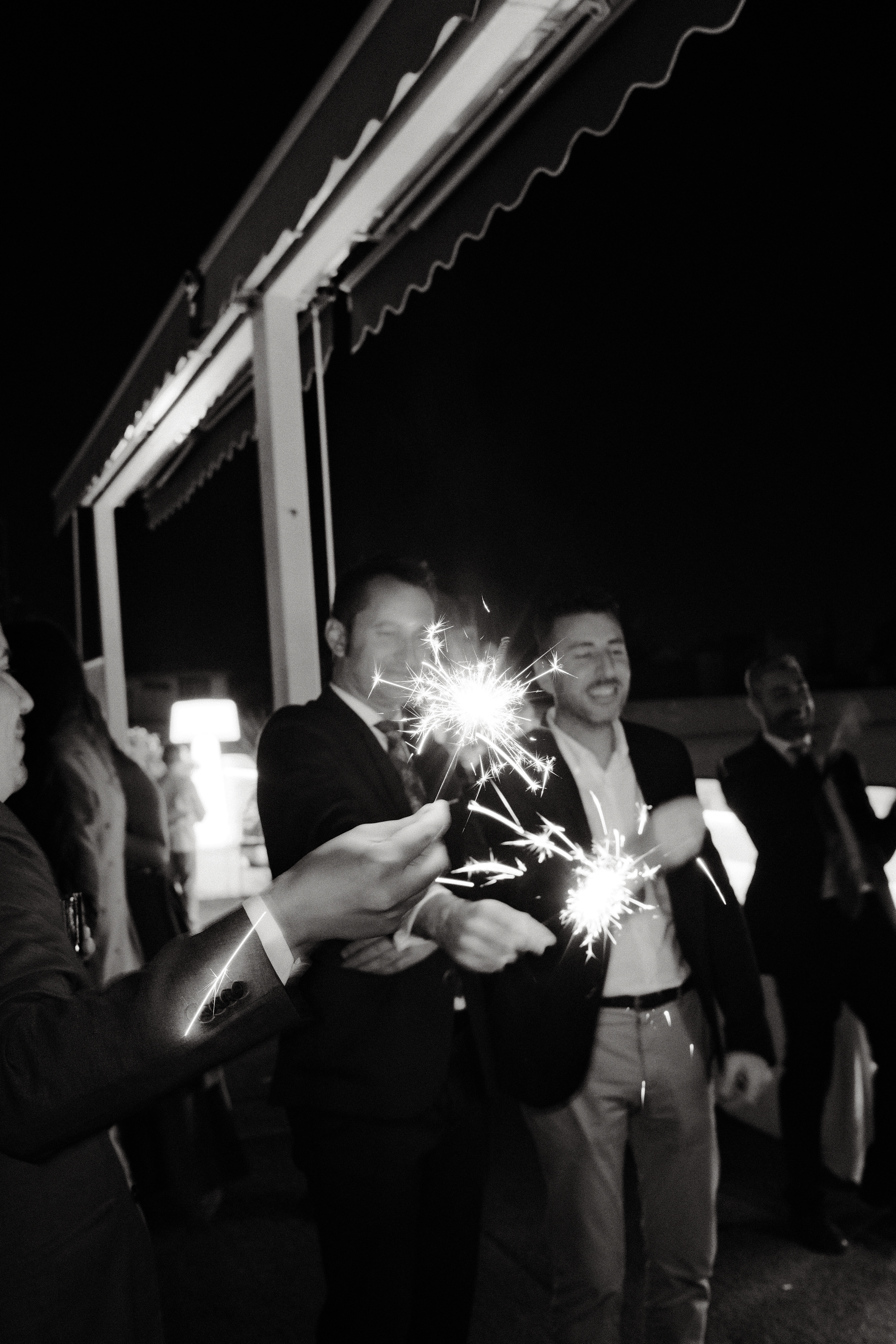 Diana Abdou además de invitada fue la encargada de la ilustración del sitting plan y de los menús, un bonito centro floral acompañaba a éstos en cada mesa. Ya con todos dentro el ambiente empezó a achisparse, el broche final a la cena sería la impresionante tarta de Sarina Castagnoli, un 12/10. Con las bengalas la música subió el volumen, y el resto es historia.