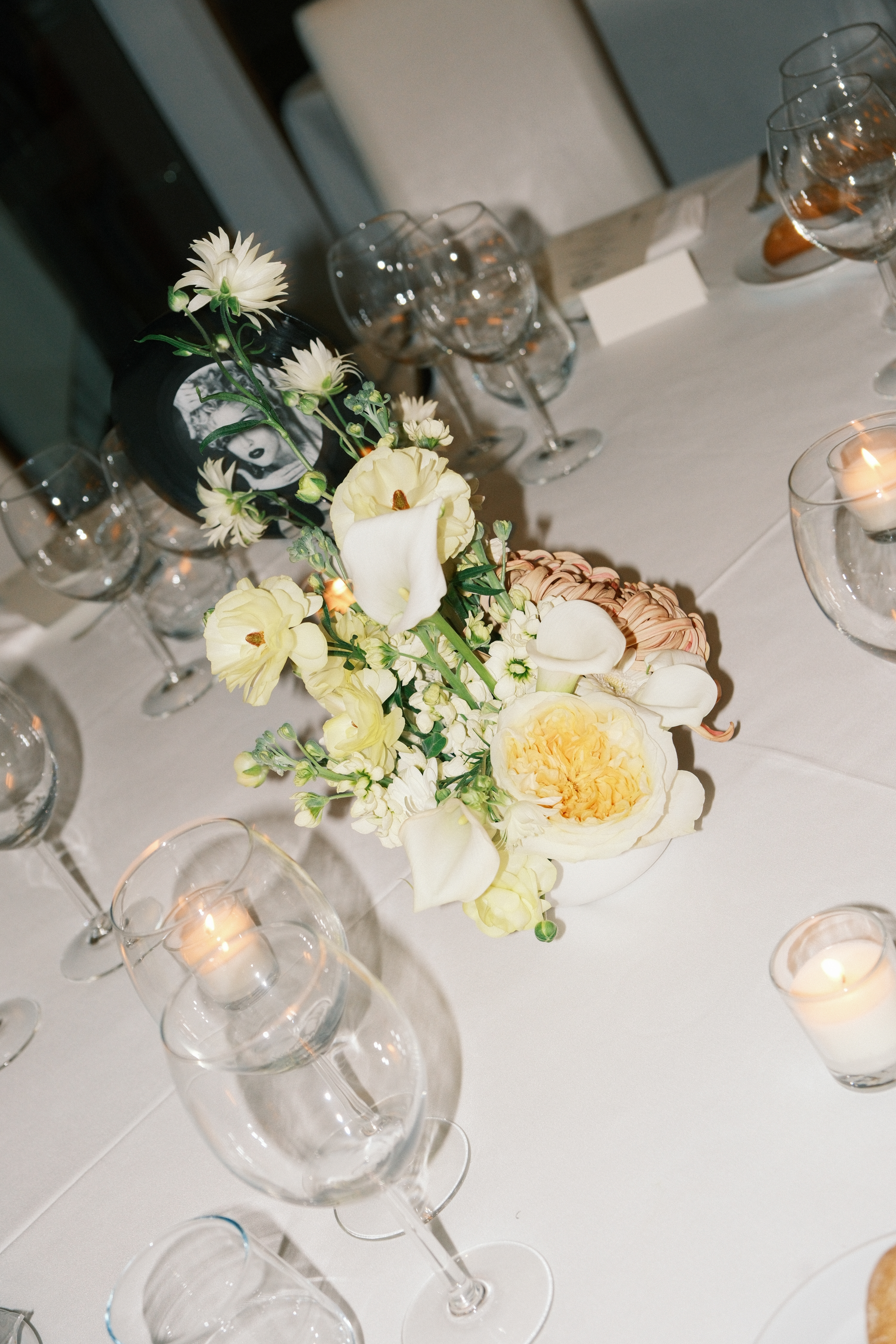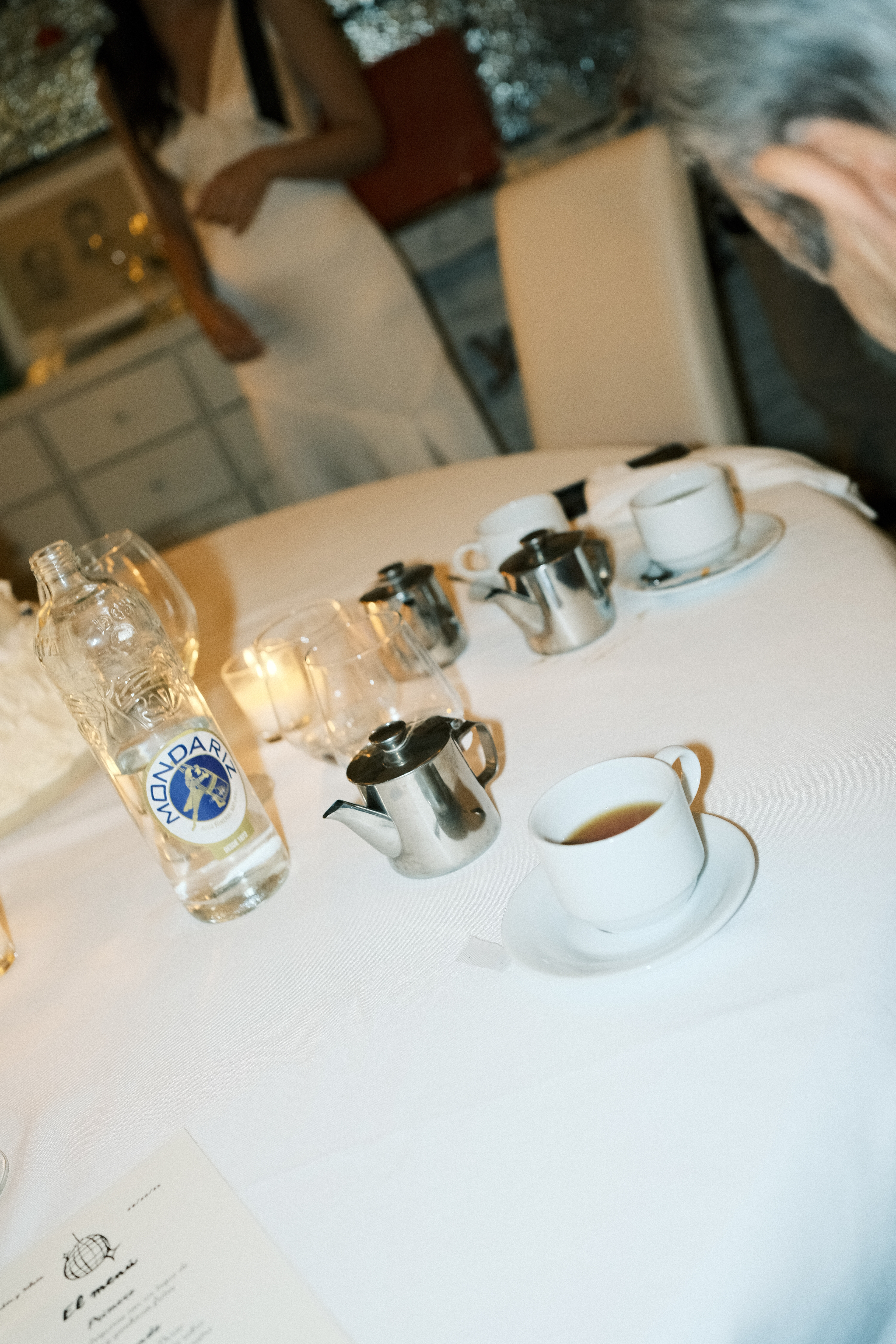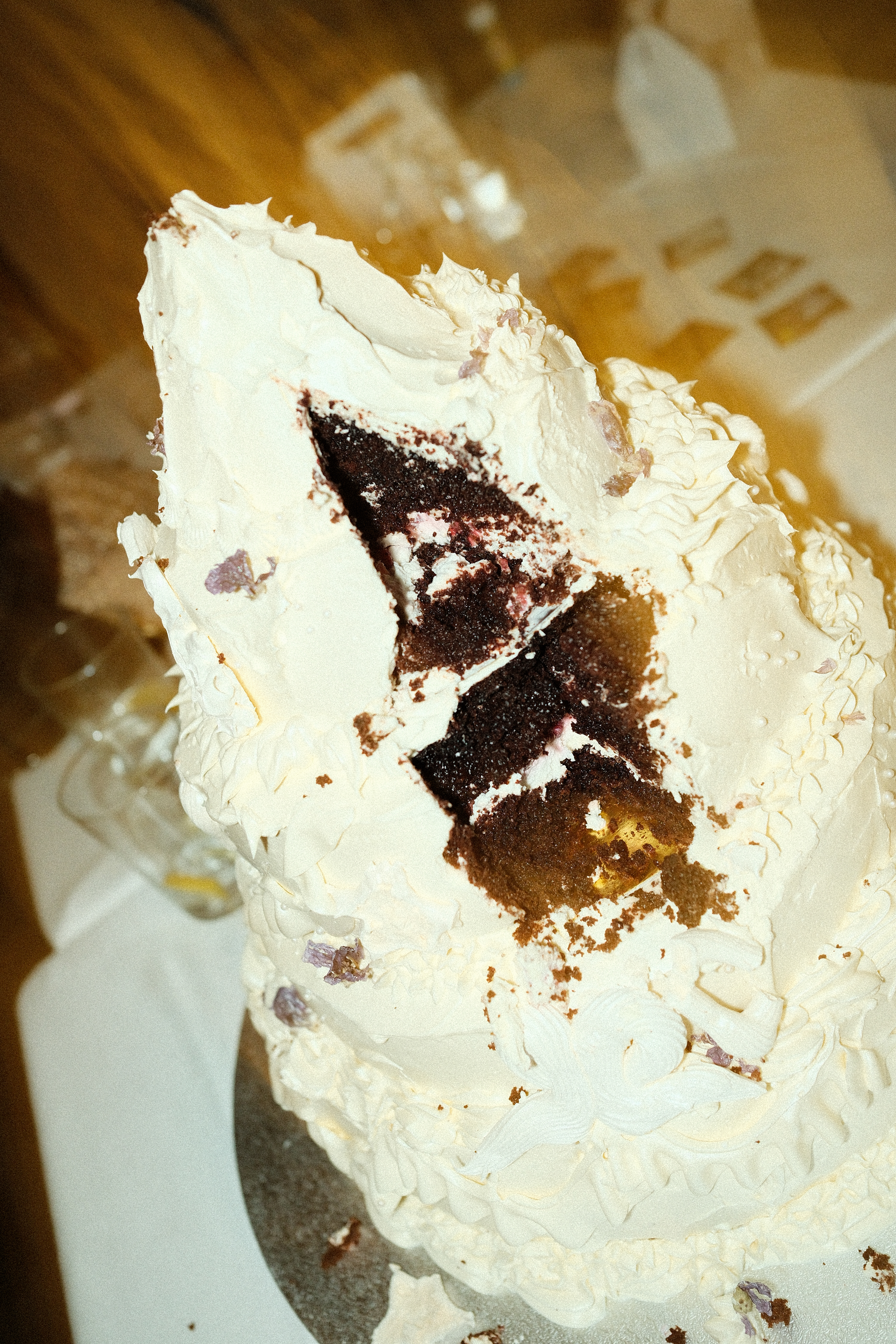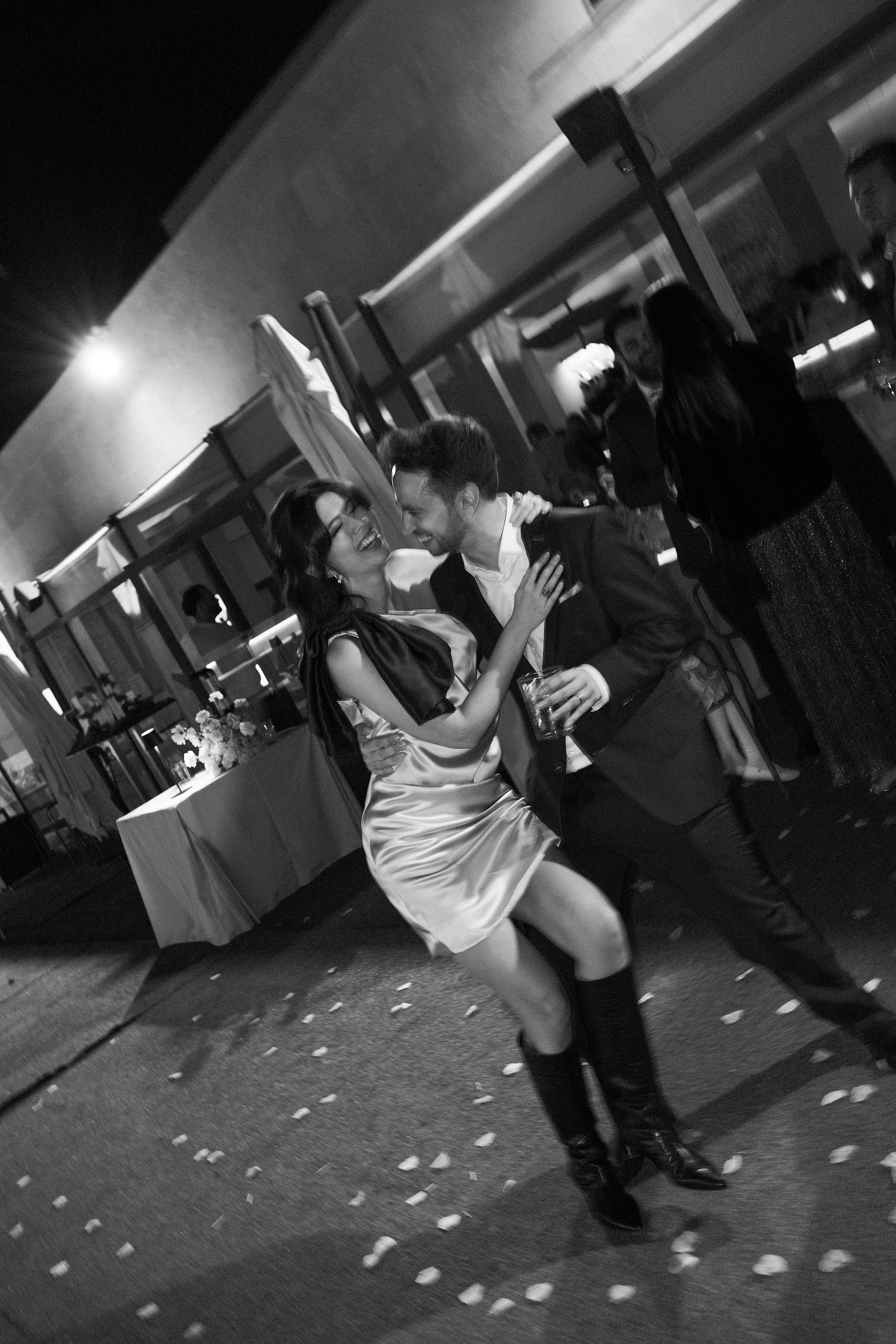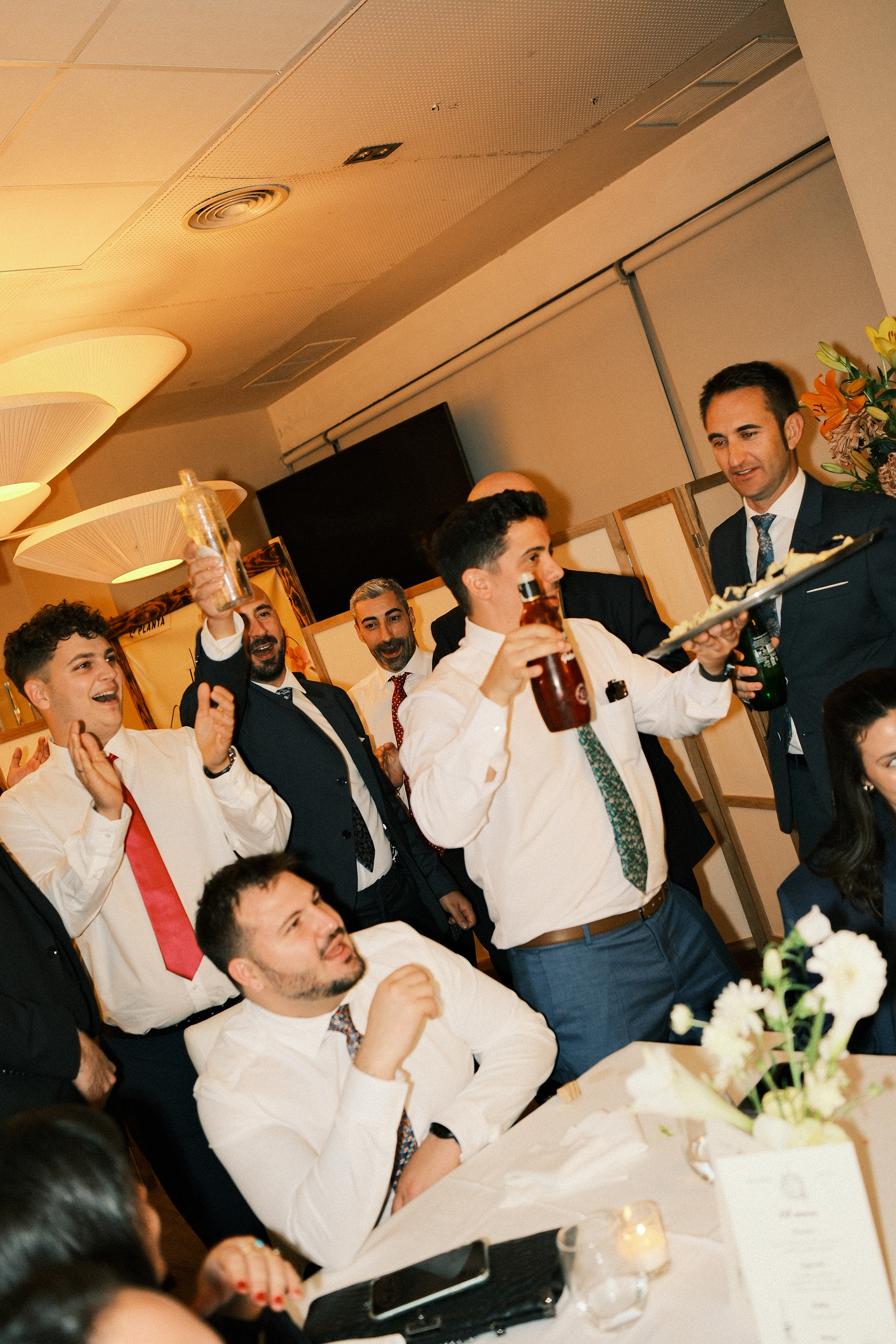 Diana Abdou además de invitada fue la encargada de la ilustración del sitting plan y de los menús, un bonito centro floral acompañaba a éstos en cada mesa. Ya con todos dentro el ambiente empezó a achisparse, el broche final a la cena sería la impresionante tarta de Sarina Castagnoli, un 12/10. Con las bengalas la música subió el volumen, y el resto es historia.