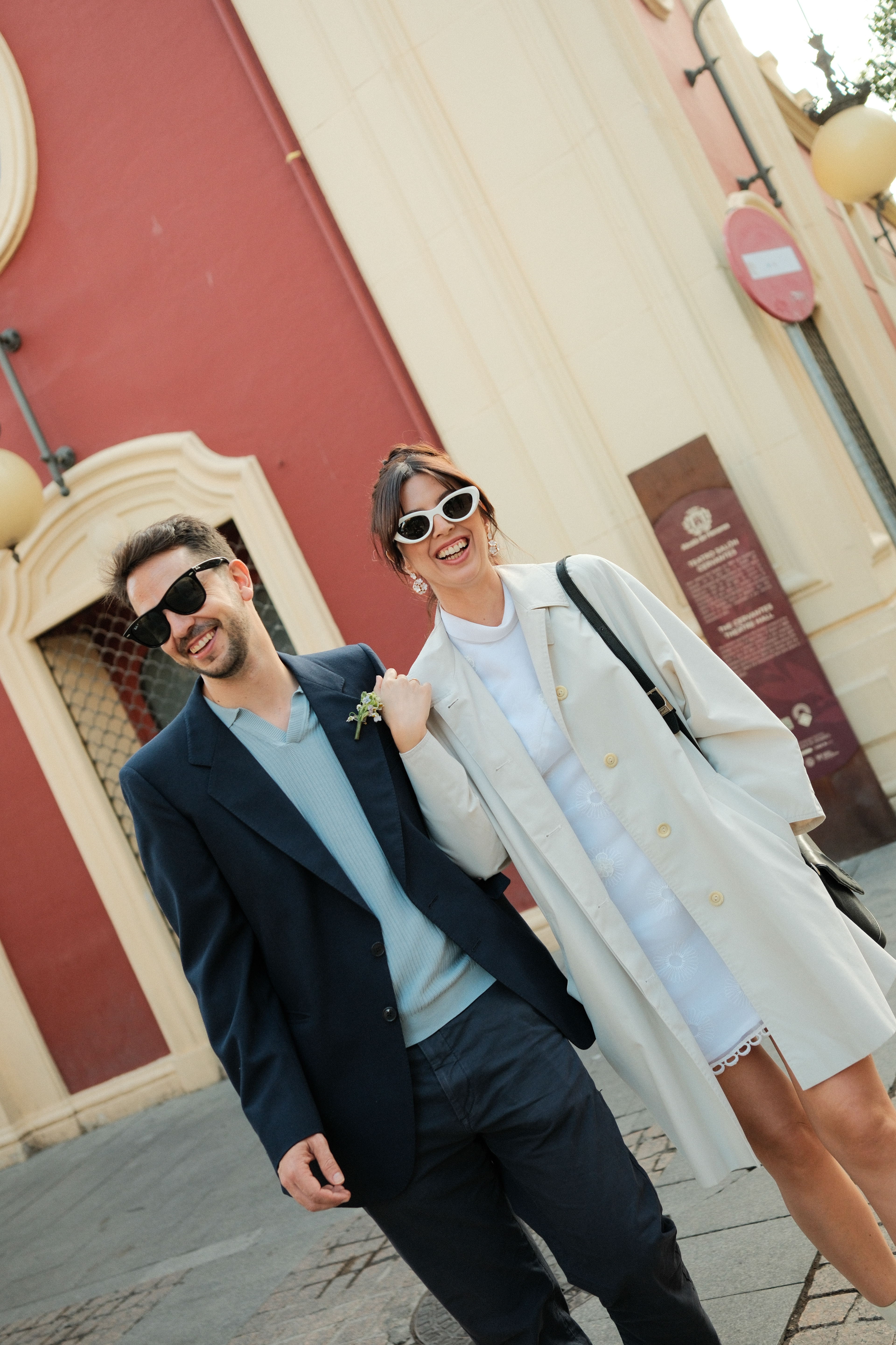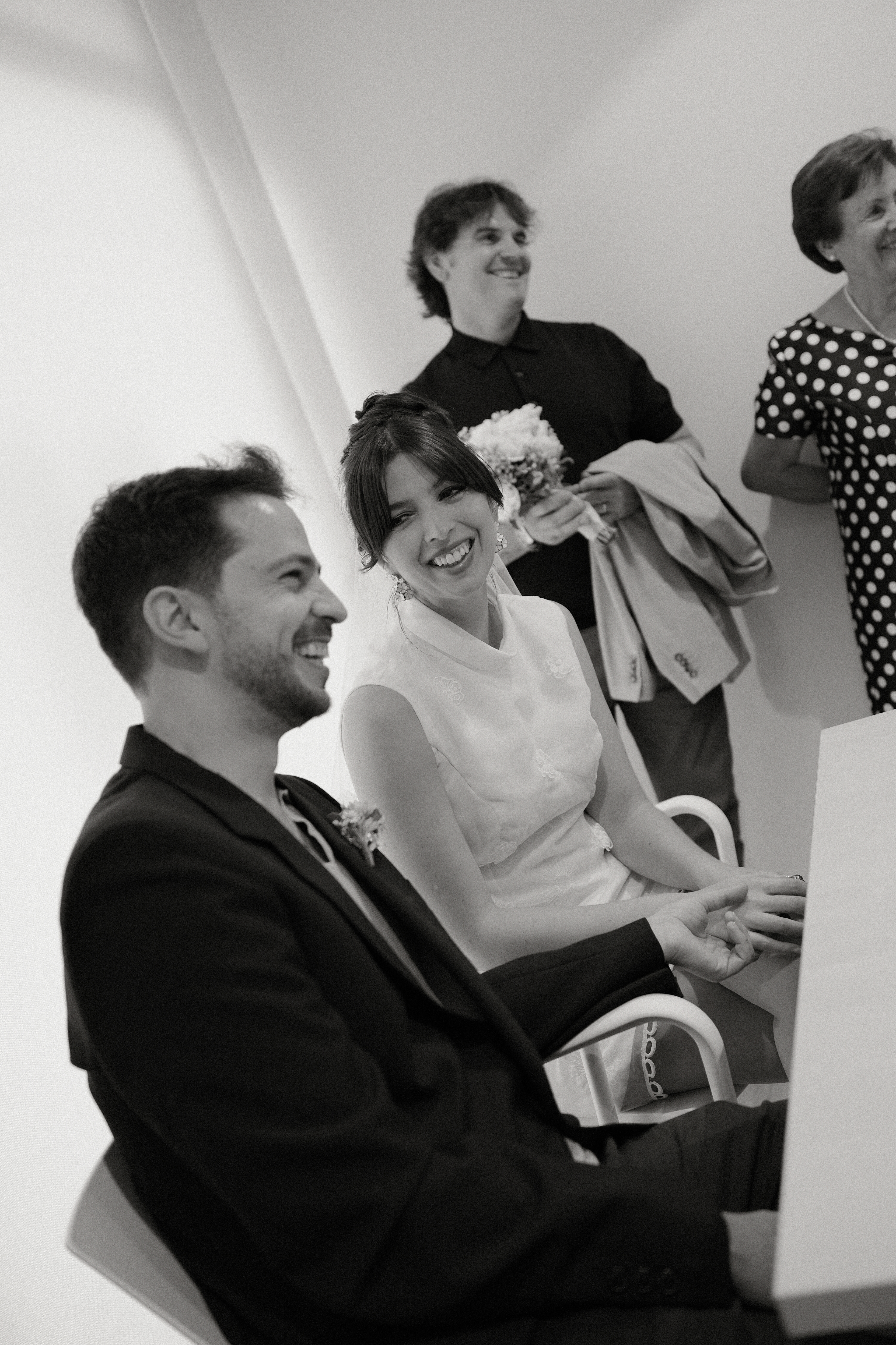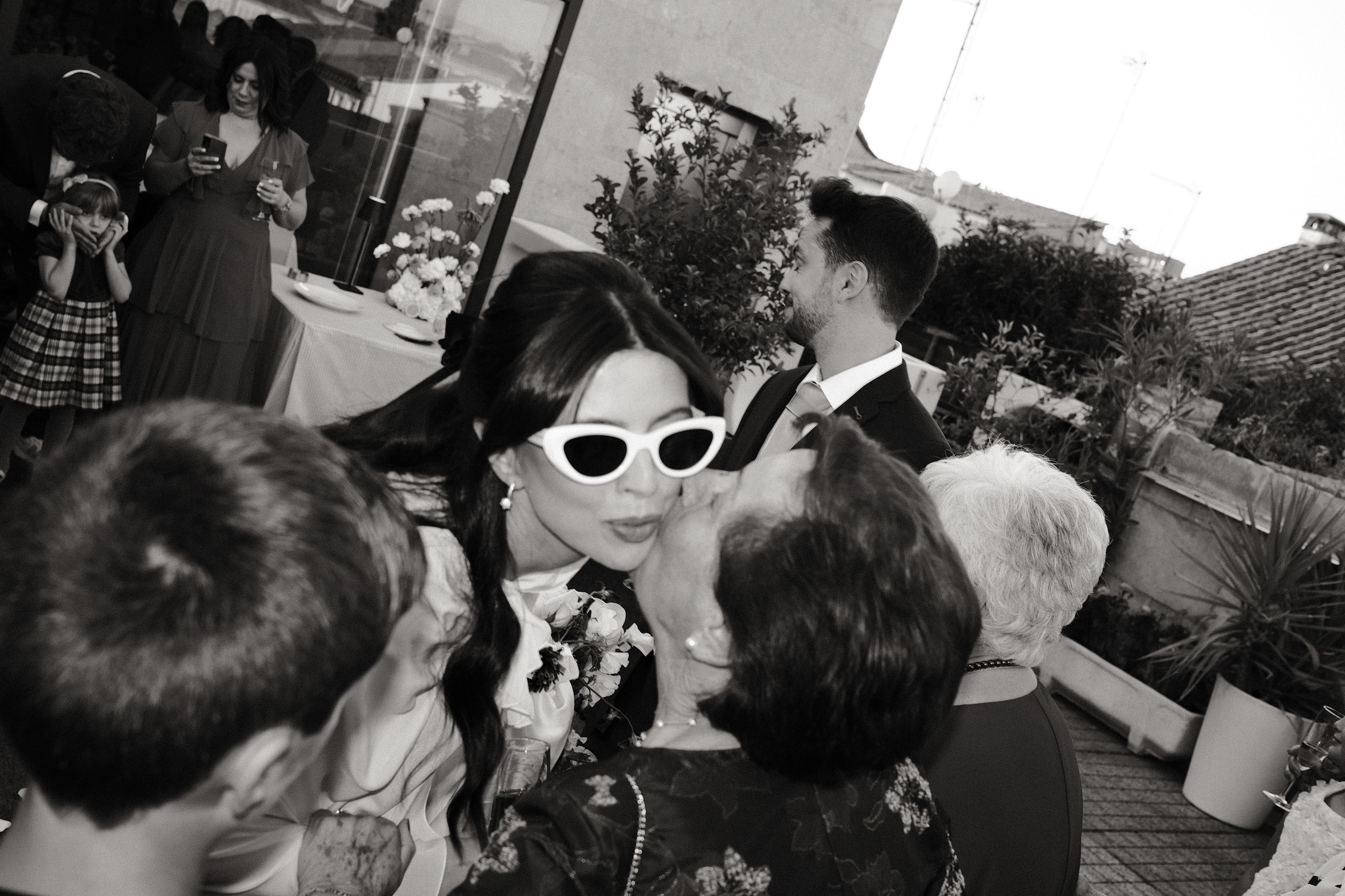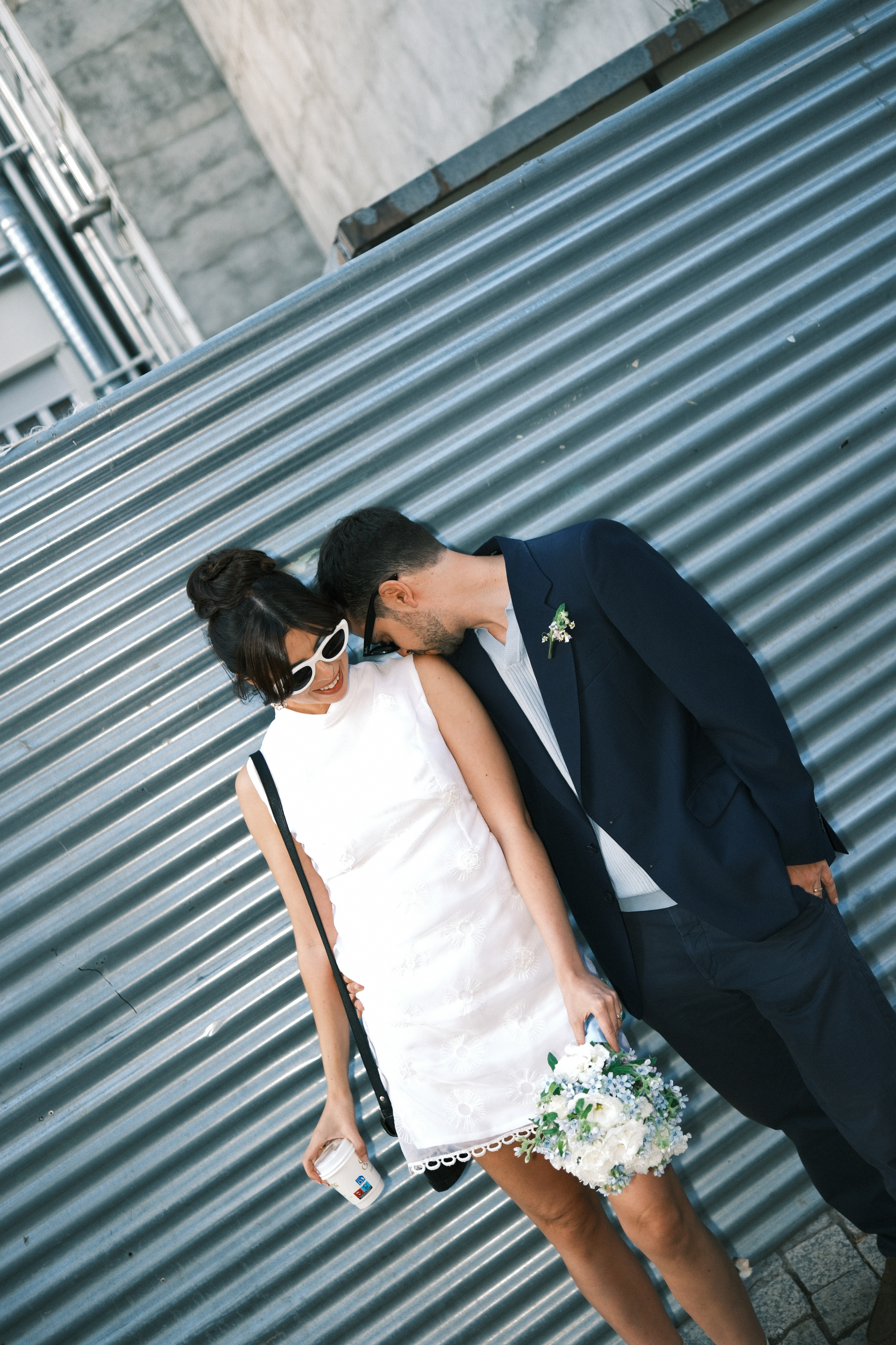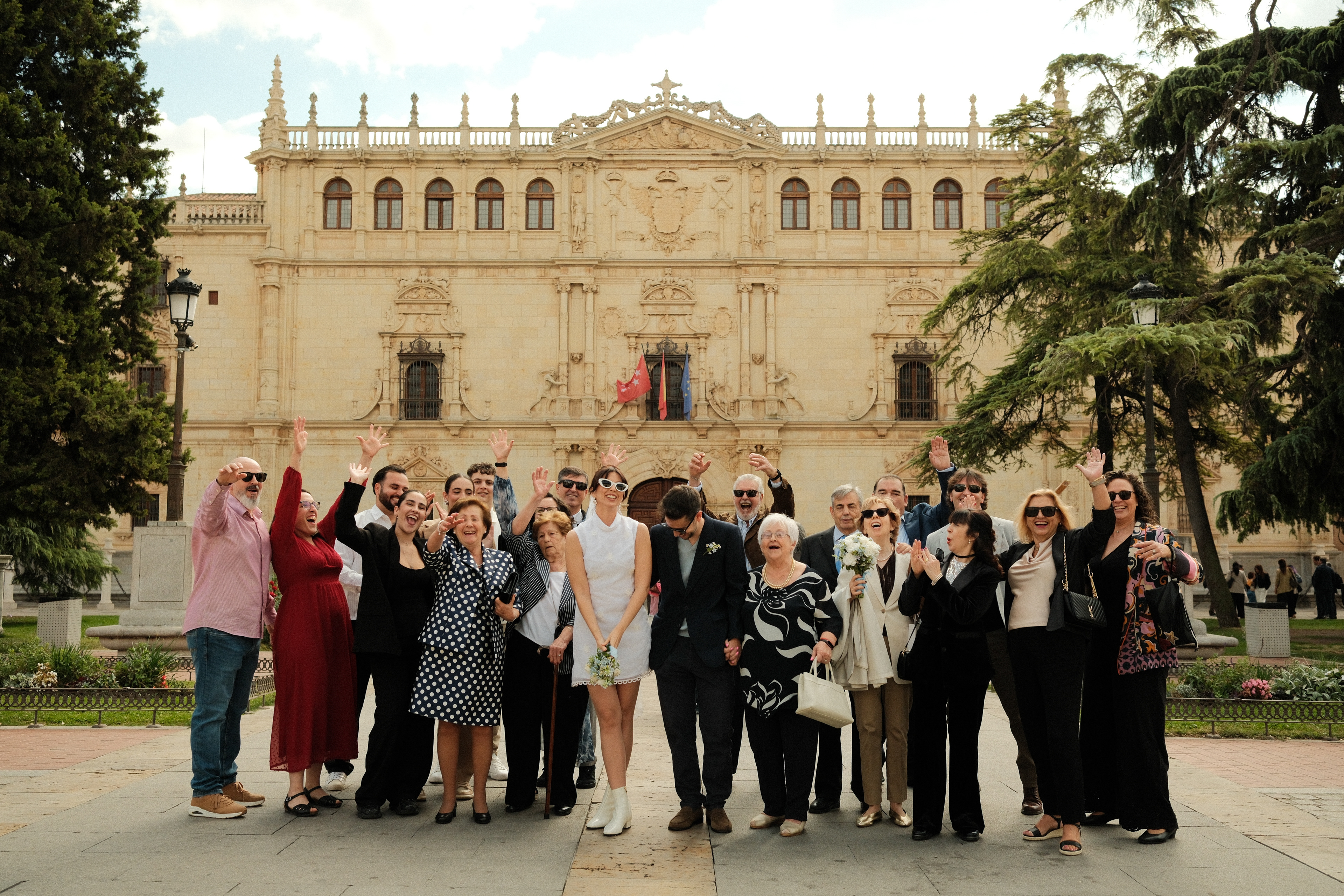 Odio los horarios y las limitaciones, los planes bonitos no deberían entender de horarios; en lo de Sil & Rubén tuvimos dos días para estar junto a ellos y disfrutar de Alcalá. A la primera mañana y tras un buen desayuno en Bartolo nos dirigimos a la notaría al lado de la Plaza de San Diego, Sil brillaba con el vestido de novia de su abuela en un trendy y original giro acompañado de gafas de sol, botas, y el ramo de Flores Mercuriales. Tras la firma recibimos a la pareja entre aplausos y nos fuimos todos juntos a tomar el vermú en una taberna cercana.