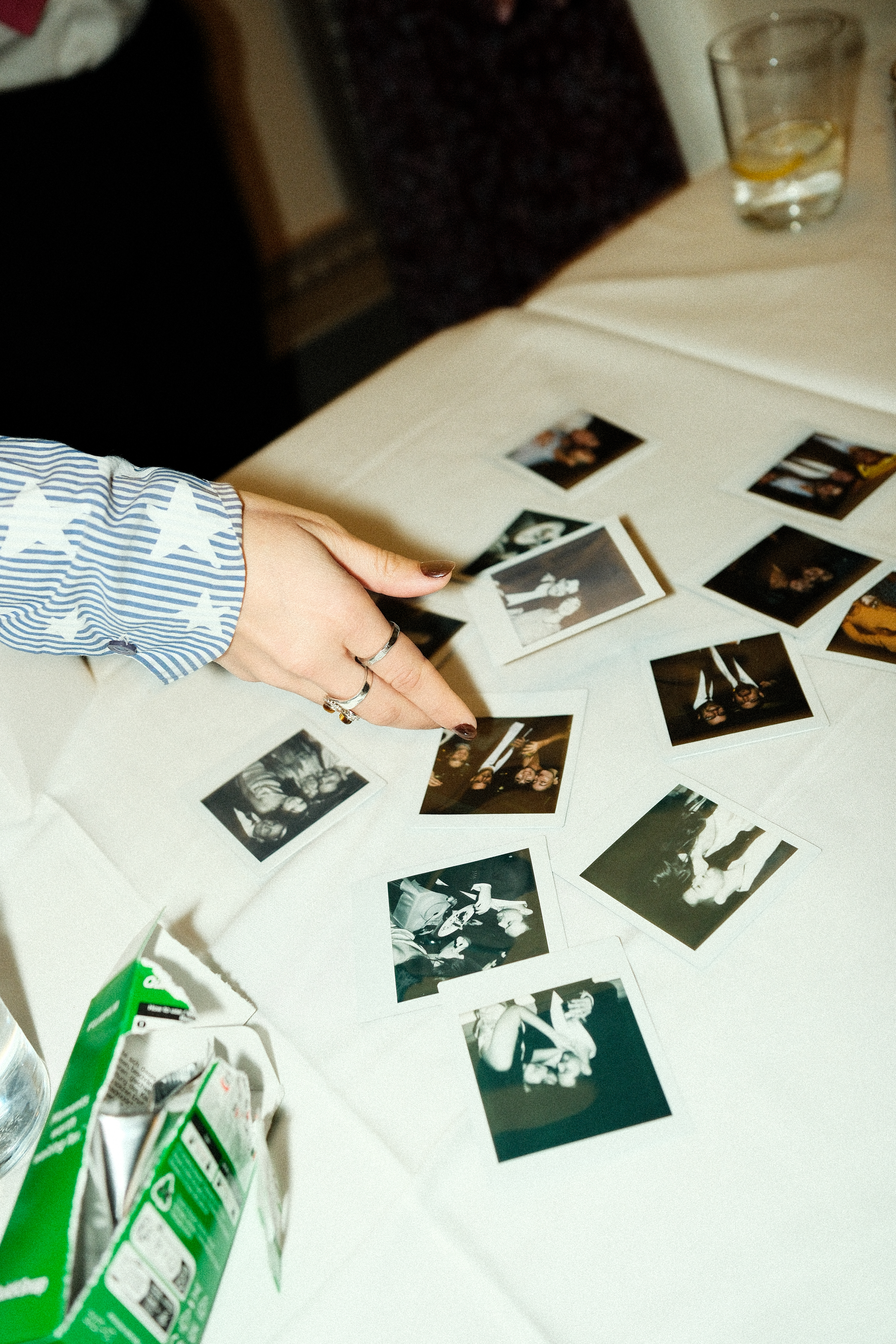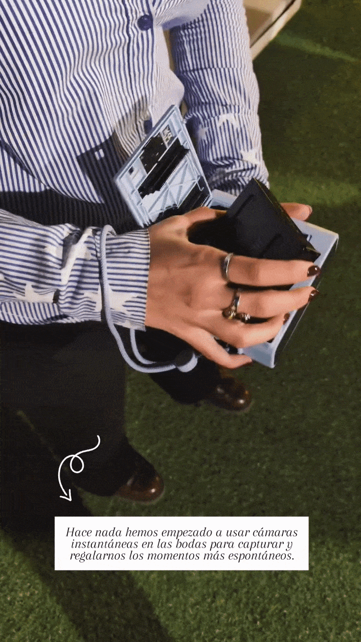 En la boda de Sil & Rubén decidimos probar varias cámaras Fujifilm Instax para retratar a todos los invitados de la boda durante el cóctel, el éxito no pudo ser mayor. La intención era crear un mural con las fotografías de todos los invitados, pero tan pronto salía cada flash y cada instantánea, se nos escapaban de las manos. A los 5 minutos cada pareja o grupo de amigos tenían un bonito recuerdo recién revelado en su bolsillo. 70 instantáneas que hoy adornan neveras y tableros por medio mundo, recordando aquella bonita tarde en Alcalá de Henares.